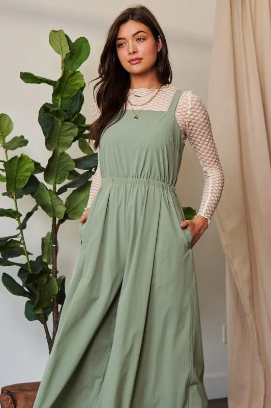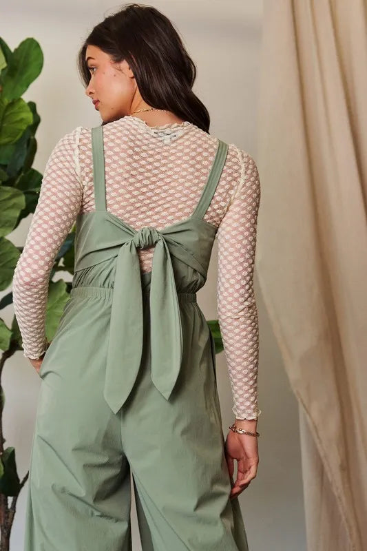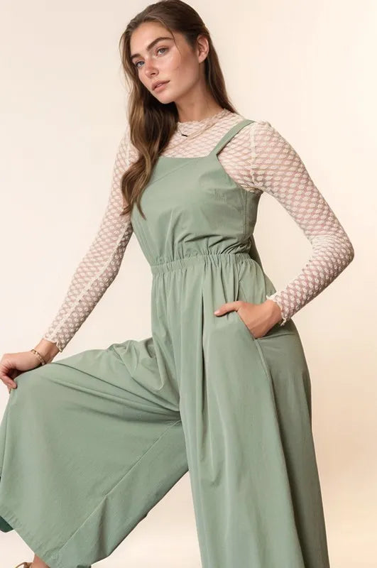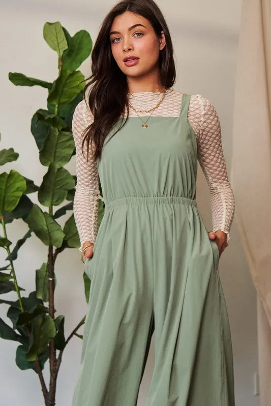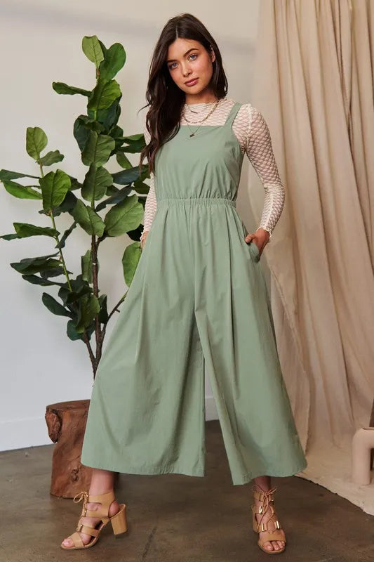 Davi & Dani Creased Wide Legs Elastic Waist Jumpsuit