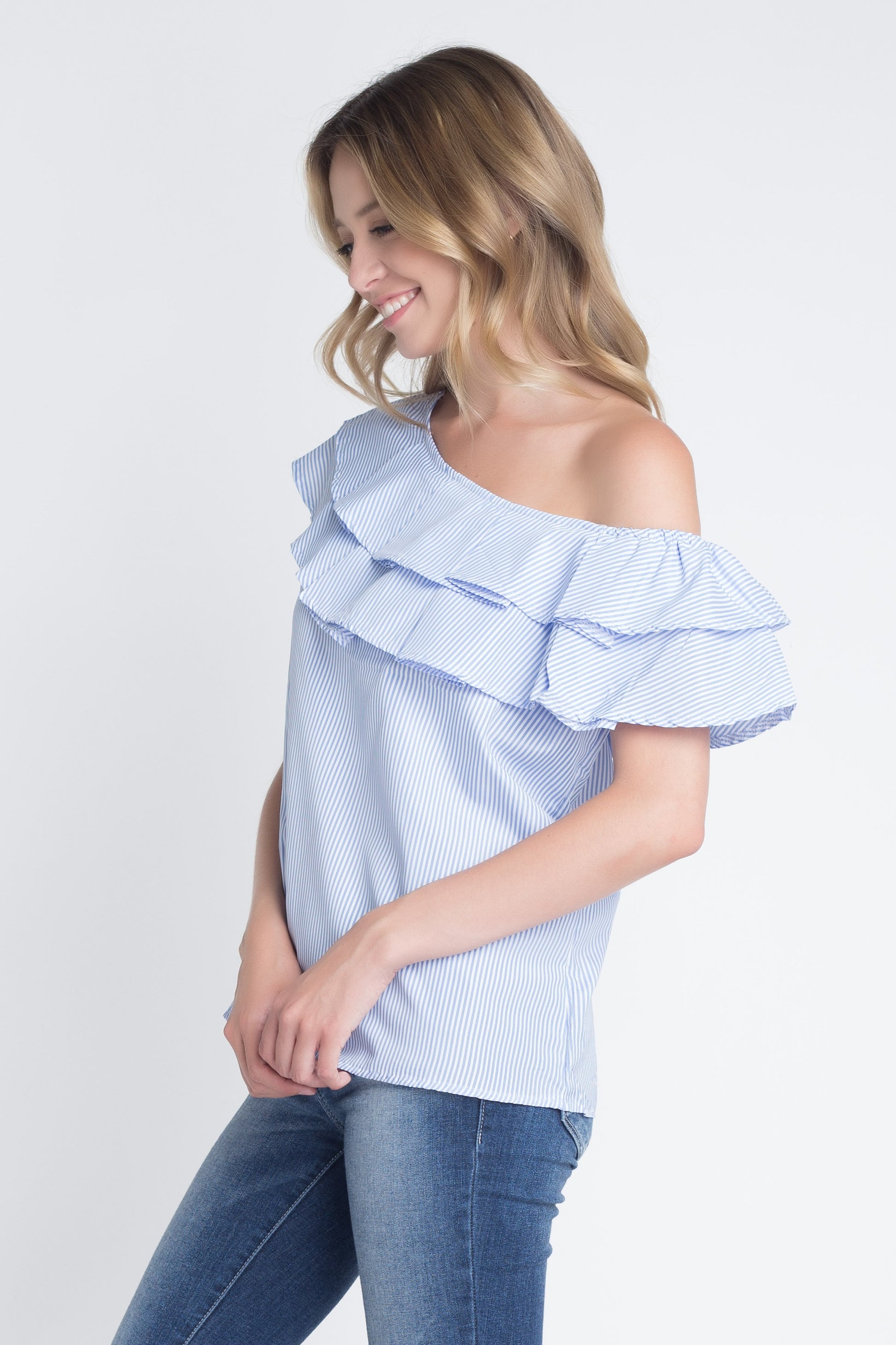 Women's Striped Off Shoulder Ruffle Stripe Blouse