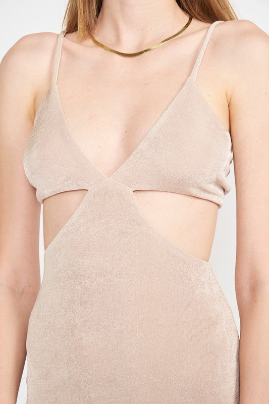 SPAGHETTI STRAP TIE BACK MIDI DRESS WITH CUTOUT