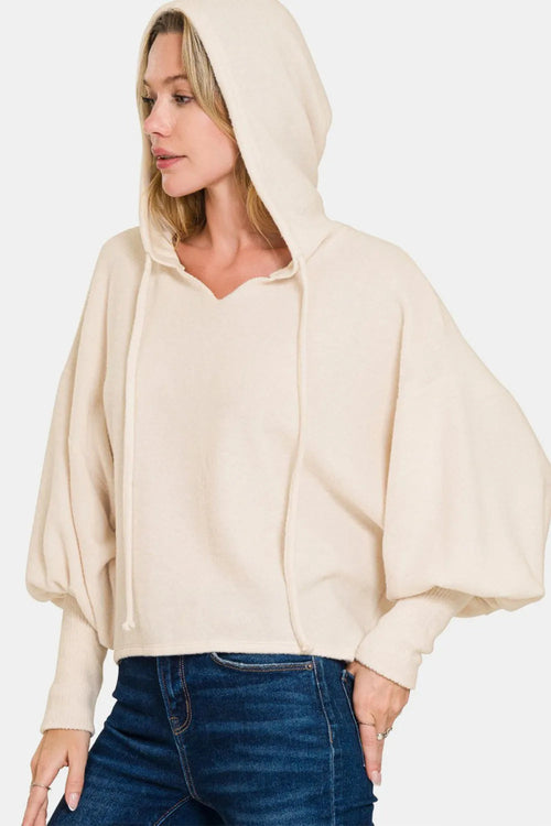 Zenana Brushed Hacci Drop Shoulder Cropped Hoodie